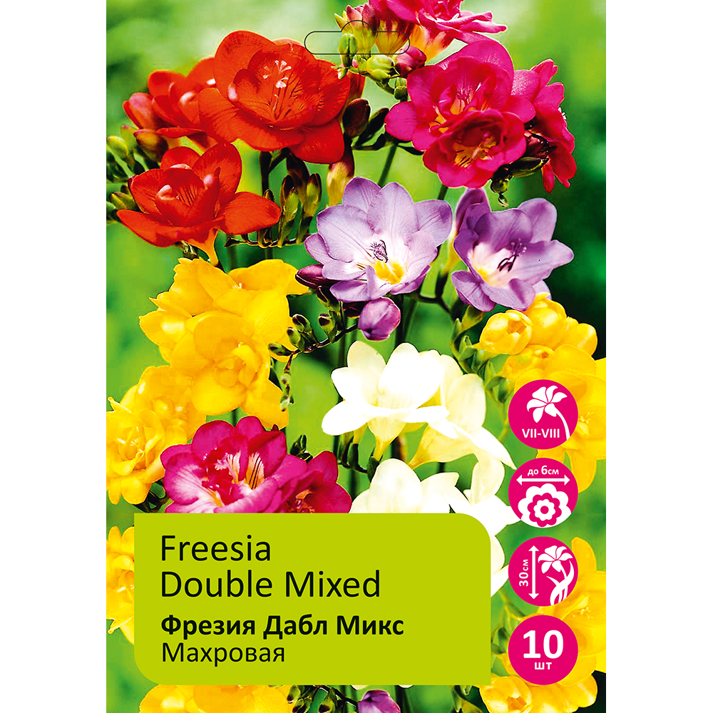 Фрезия(Freesia) — многолетнее травянистое клубнелуковичное растение семейства ирисовые. Высота от 20 до 70см. Листья линейные зеленые. Цветки узковоронковидные, 3–5 см длины, трубка слабая, узкая, у основания с широким горлышком (до 6 см). Окраска цветков может быть белой, кремовой, жёлтой, оранжевой, розовой, красной, сиреневой, голубой, фиолетовой.
