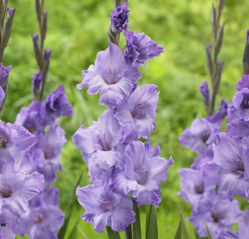 Цветы: крупные, нежно-фиолетового оттенка с молочно-белым центром. Лепестки нежные, тонкие, слегка гофрированные диаметром 15 см.