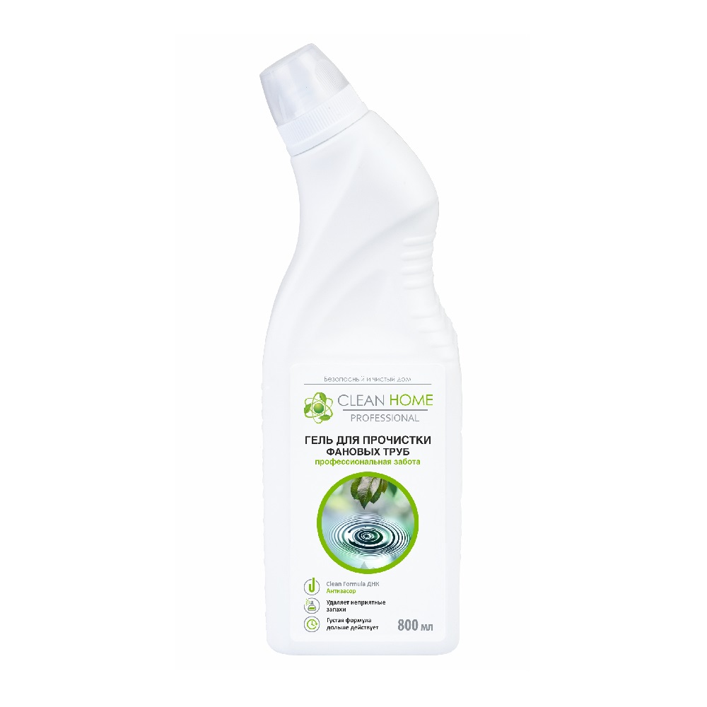 CLEAN HOME Гель для прочистки фановых труб - эффективное средство для удаления засоров в канализационных трубах, сифонах, унитазах от органических загрязнений, пищевых остатков, жира, волос и бумаги.