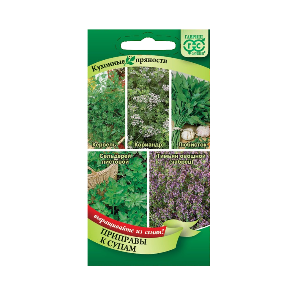 Пряные растения (кервель, кориандр, любисток, листовой сельдерей, тимьян), вошедшие в состав смеси придают супам неповторимый вкус, их легко и удобно выращивать на даче, они всегда под рукой, свежие — летом или засушенные на зиму. По вкусу и внешнему виду кервель напоминает петрушку, а вот запах у него более сладкий, пряный с нотками аниса. В супы и бульоны кервель лучше добавлять в свежем виде, или подвергать термической обработке не более 2-х минут. Тимьян «король» супов с морепродуктами и рыбой. Им часто приправляют овощные супы-пюре из тыквы, моркови и томатов. Полезно также добавить несколько листочков тимьяна в жирный бульон из баранины, пряность замаскирует специфический вкус и стимулирует пищеварение. Кориандр добавляют в супы в виде зелени и семян. Очень хорошо он сочетается с картофельными и бобовыми похлебками, грибным супом-пюре. Сельдерей листовой и любисток похожи внешне и запахом. Оба растения очень полезны, любому супу или бульону они передадут свой терпкий, свежий, приятный аромат. Холодный с