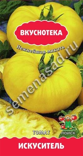 Яркие, мясистые, крупные плоды до 900 г. Превосходный вкус, восхитительная кремовая структура, исключительное качество. Среднеспелый сорт для пленочных теплиц. Растение высокорослое, требует формирования и подвязки. Плоды плоскоокруглые, слаборебристые, жёлтого цвета. Для употребления в свежем виде.