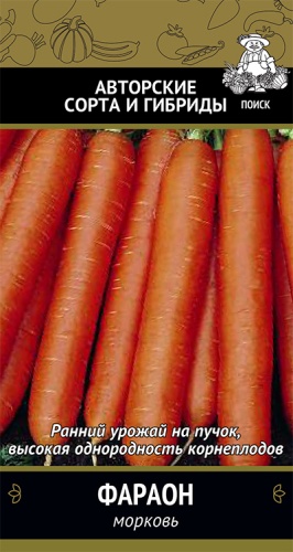 Раннеспелый сорт. Период от всходов до уборки урожая 70-85 дней. Сортотип Амстердам. Корнеплоды цилиндрические, насыщенного оранжевого цвета. Длина 15-18 см. Масса 110-145 г. Великолепные вкусовые качества. Ровные, однородные корнеплоды привлекательного цвета. Рекомендуется для потребления в свежем виде и для переработки.